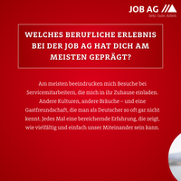 1. Welches berufliche Erlebnis bei der JOB AG hat Dich am meisten geprägt?
