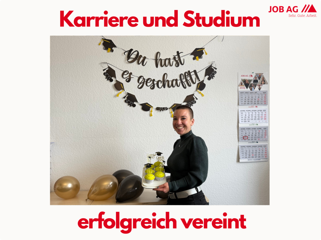Mit ihrem Fachwissen, ihrer Professionalität und ihrer strukturierten Arbeitsweise zeigt Emily jeden Tag, was bei der JOB AG Sehr. Gute. Arbeit. bedeutet. Sie bereichert unser Team nicht nur fachlich, sondern auch menschlich – durch ihre wertschätzende, motivierende und stets lösungsorientierte Art.